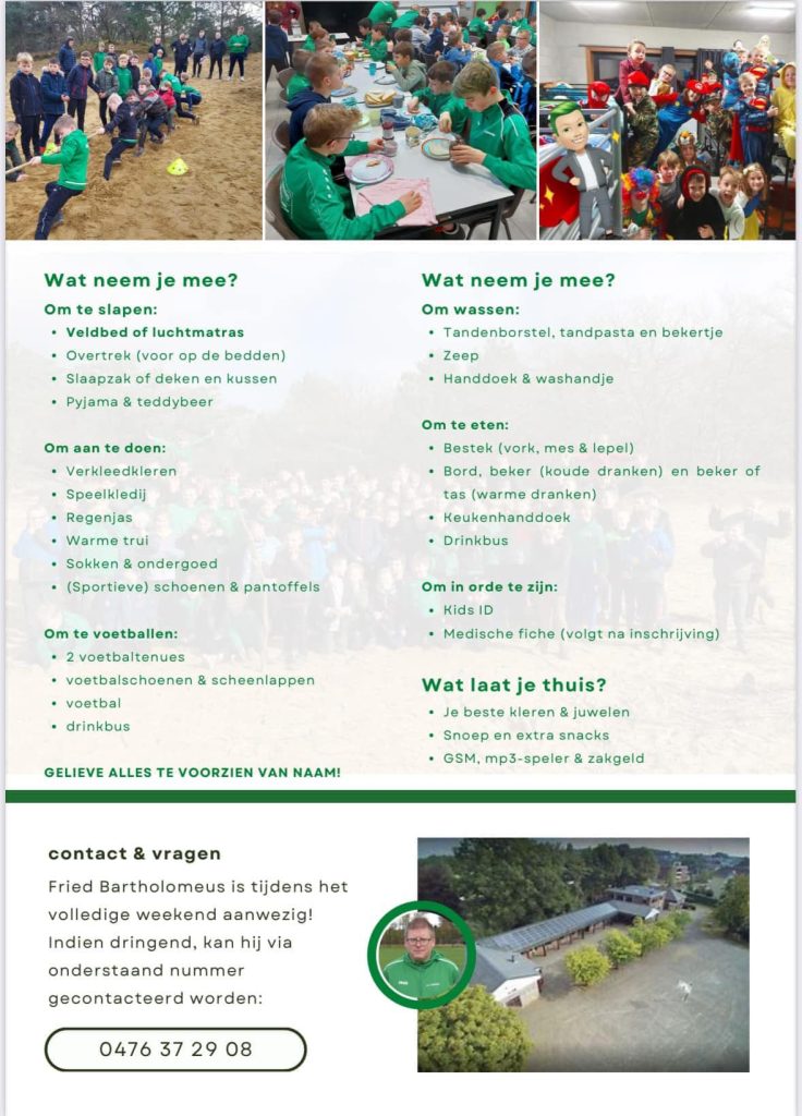 Het jeugdweekend bij KFC Beekhoek stond volledig in het teken van voetbal, spel en plezier. De jeugd stond centraal en genoot met volle teugen van een afwisselend programma, boordevol leuke activiteiten en voetbalmomenten. Overdag werd er volop bewogen en gelachen, en ’s avonds werd er samen gegeten en ontspannen in een gezellige sfeer. Dankzij de inzet van onze vrijwilligers werd het een vlekkeloos en hartverwarmend weekend. Een echt topweekend die nog lang blijft nazinderen bij iedereen die erbij was.