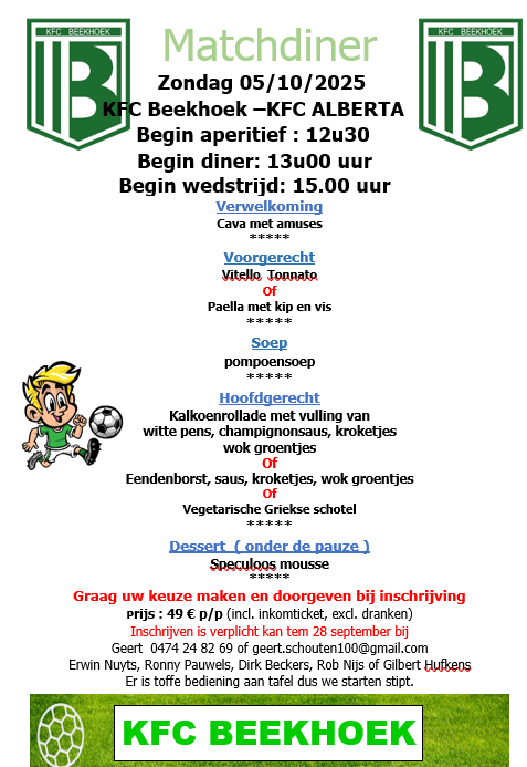 Schrijven jullie ook in voor onze matchdiner?!